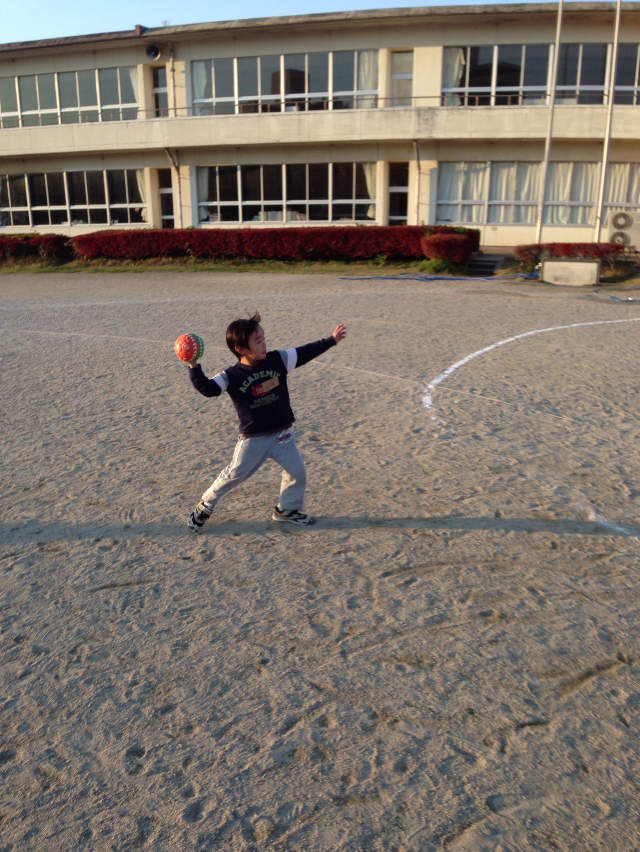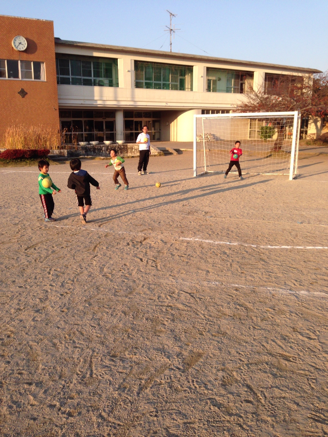 最初,「サッカーやりたい」「ドッジボールやりたい」といってくれた子もいて,それもいいかも,と思ったのですが「ハンドボールってやったことないでしょ?」と思って紹介しました。そうすると「もっともっとやりたい!」となってしまいました。ただ,時間の都合で二回やれなかった年代のチームがあって,本当,ごめん。