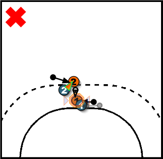 初心者にありがちなのが、シュートを狙ってないまま(しかもポストプレイヤーを凝視して)ポストパスを出したり、DFをブロックしないままパスを待ったりするというパターンです。