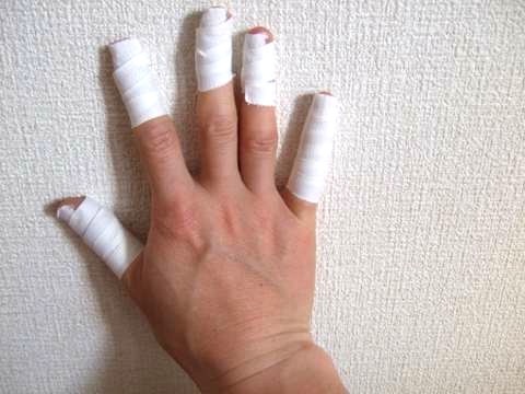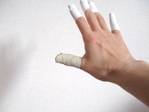 - 僕は,利き手の5本の指全部と,反対の手の親指と小指を巻いてます。