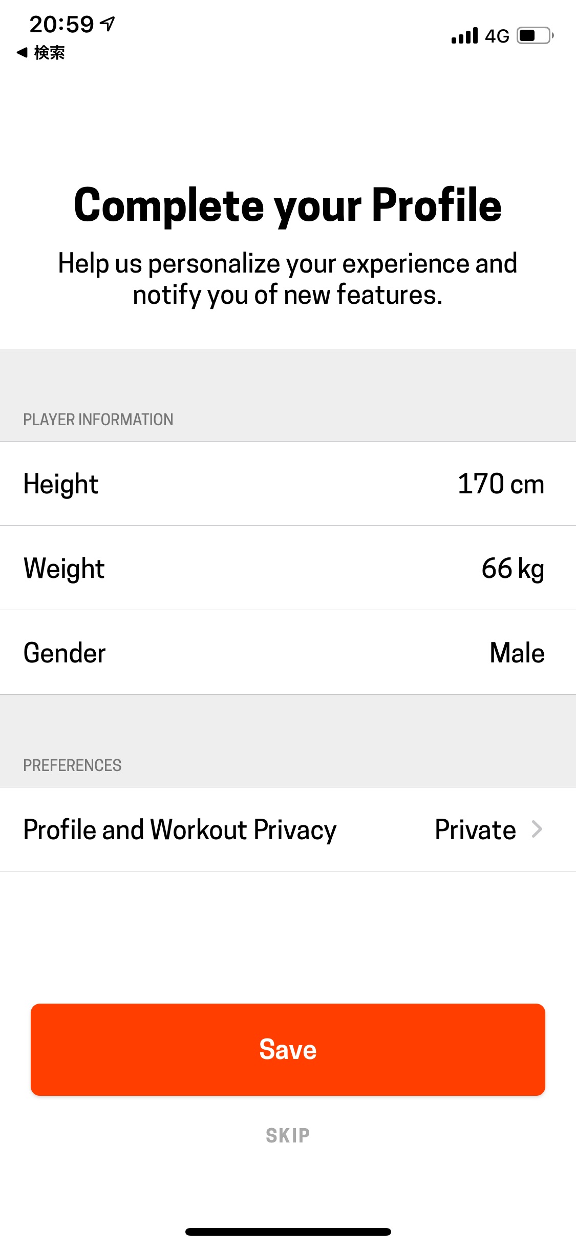 自分の体格やレベルなどを登録しますが、これもスキップしても大丈夫。