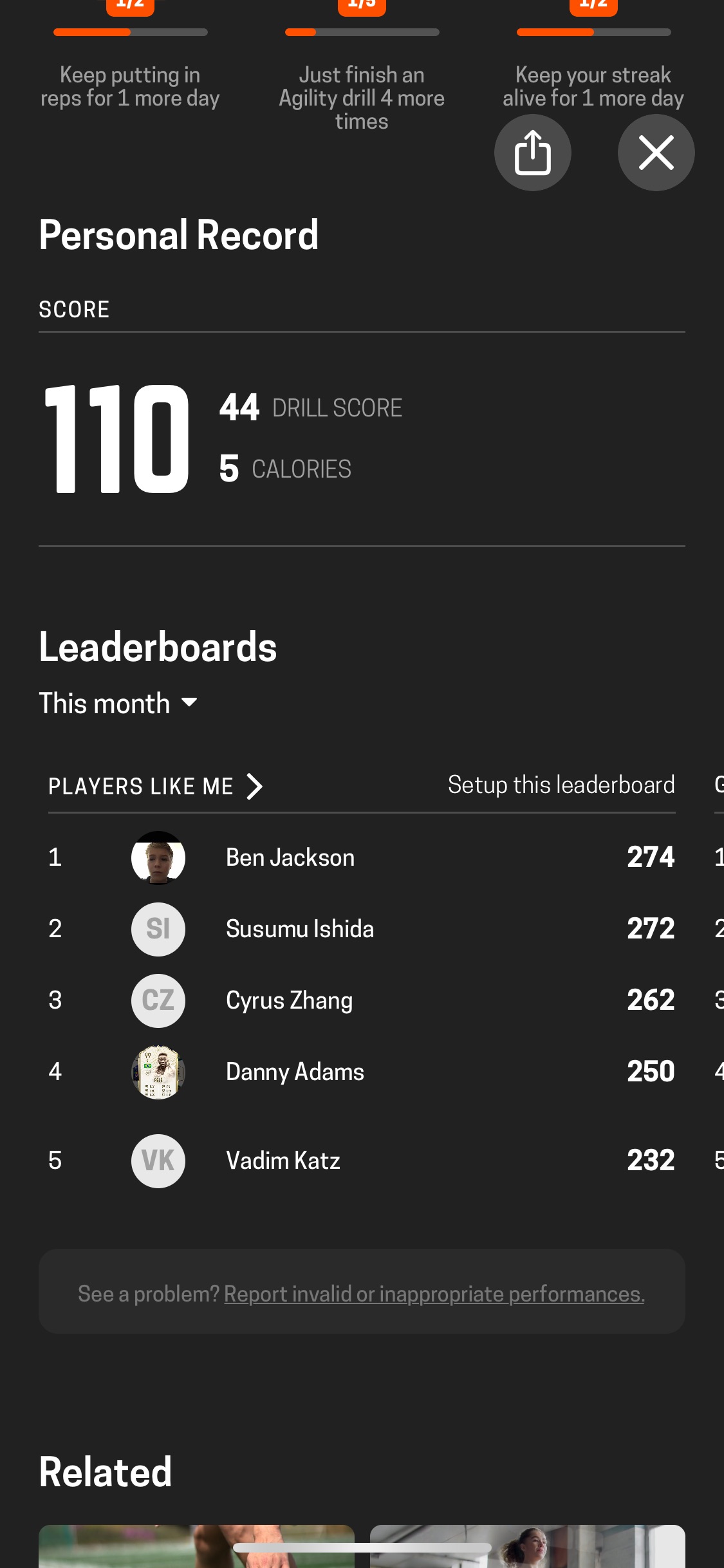各メニューには、これまでの自分のプレイの記録と、参加者のランキングが出ます。