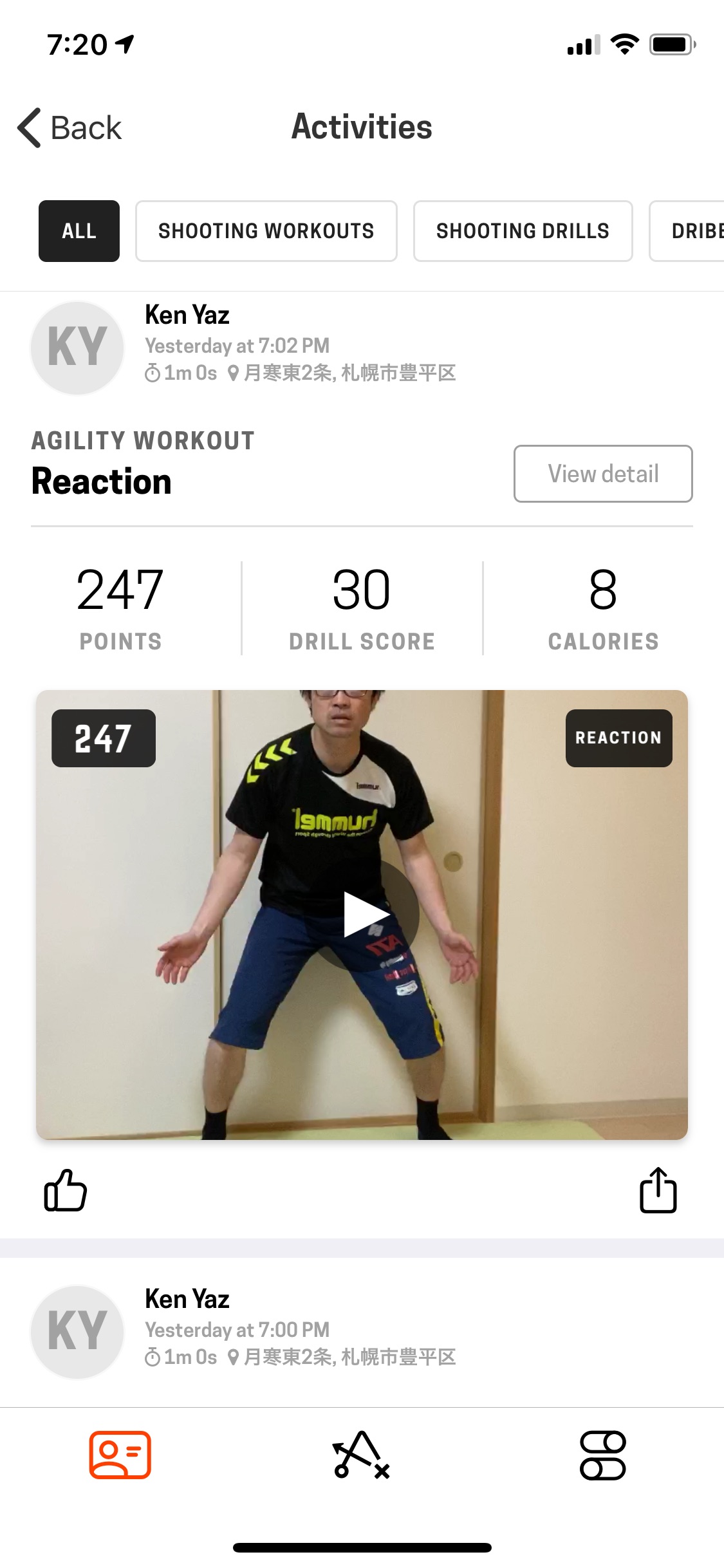 例えばActivitiesをクリックすると、自分のトレーニングの動画が保存されてるのに気がつきます(恥ずかしい)。これはサーバ側に保存されてるようです。