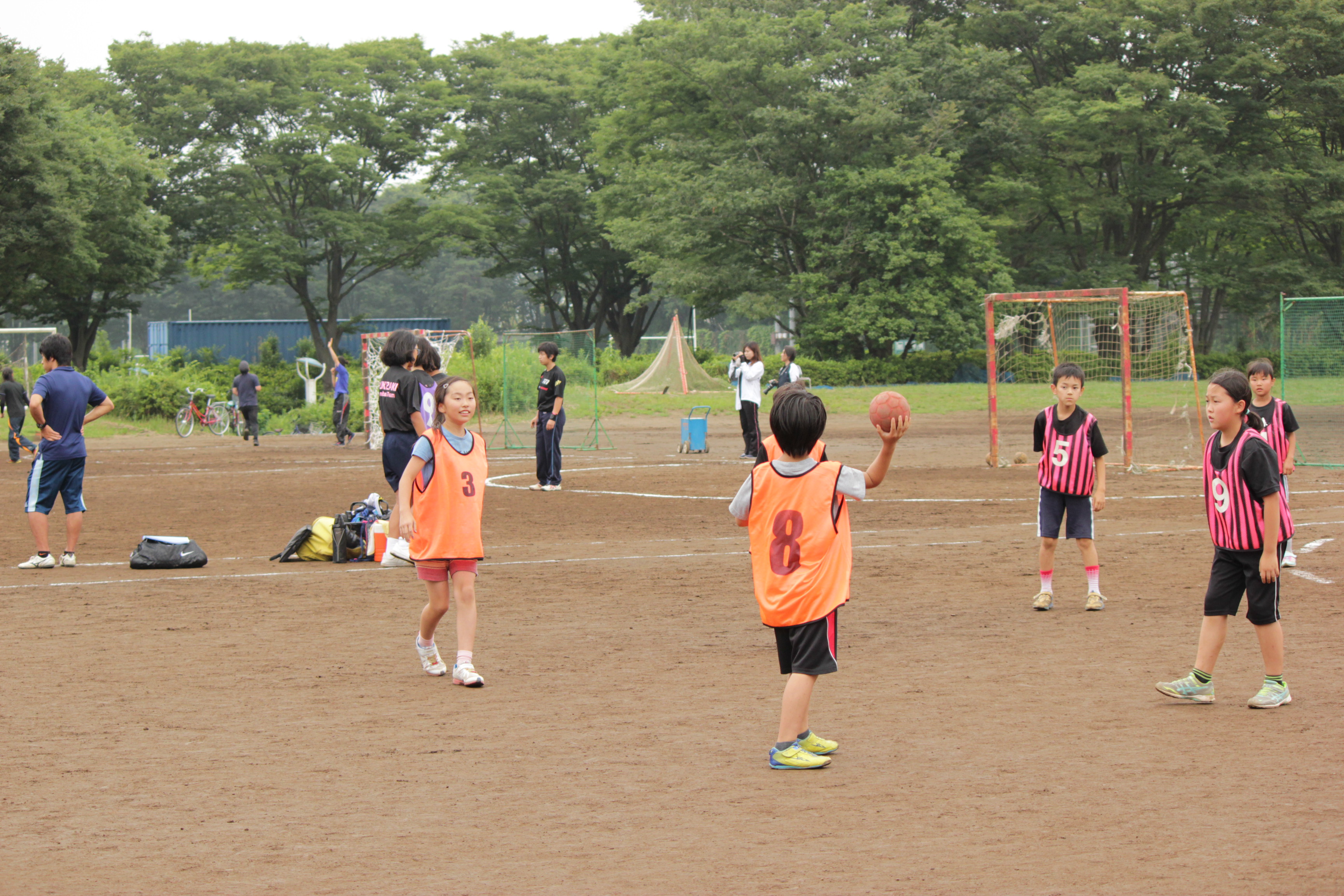 お父さん・お母さんは、成年の部に学園クラブの保護者チームと合同で参加。主に中学生と対戦しました。こちらも初めてのハンドボールでしたが、さすが運動経験で、ナイスプレイを連発。電池が切れたらすぐ交代、という物量作戦で、3位になりました。お母さんも持ち前の運動能力で、シュートやGKでナイスプレイをみせてくれました。