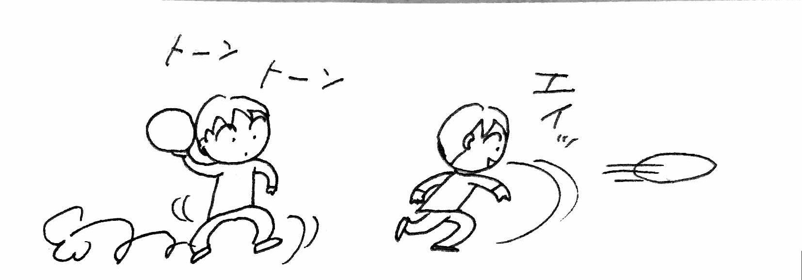 サイドステップ(横向いてスキップ)をしながら投げつけます。