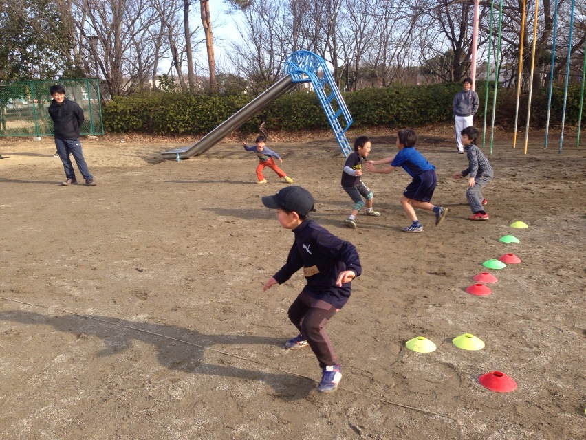 まずはいつも通り,鬼ごっこです。ほんとはスポーツ鬼ごっこにしたかったのですが,ちょっと多かったので,手つなぎ鬼(ただし,逃げる方が手をつなぐ)などをしました。