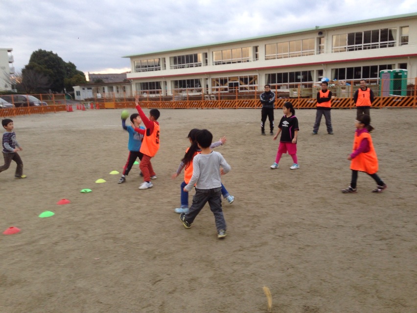 シュートを初めて決めた子もおり,ジャンプシュートを2点,といったら,バスケのようなループシュートを決めた子がいたりでした。自分でとっさに考えた工夫がとてもいいですね。そういうところを大事に伸ばしていきたいと思いました。
